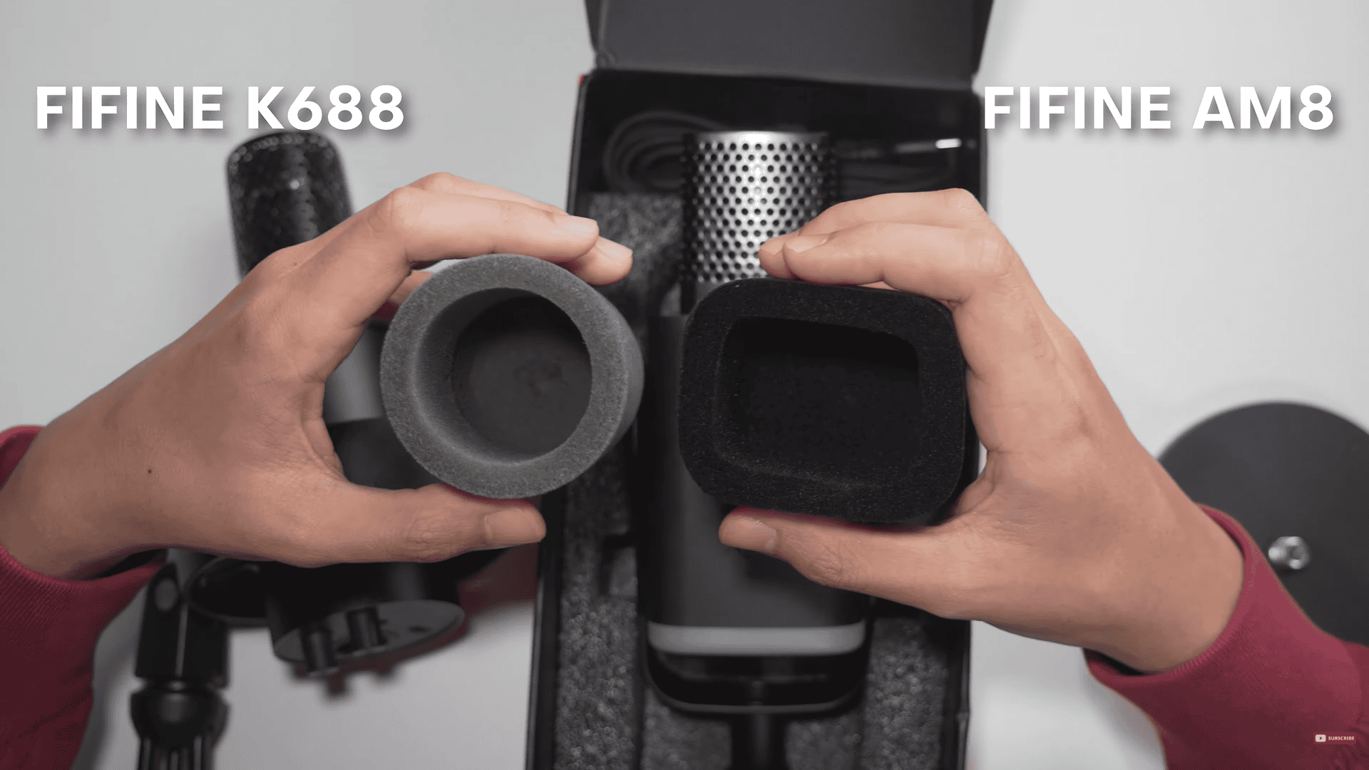 Comparing the foam pop filters side by side of the AM8 and K658, it seems to me that the AM8 foam is marginally thicker, but the K688’s foam has more give to it. I don’t know if that has to do with the shape or the density of the material, but it seems to me that Fifine is really iterating these small upgrades over time.