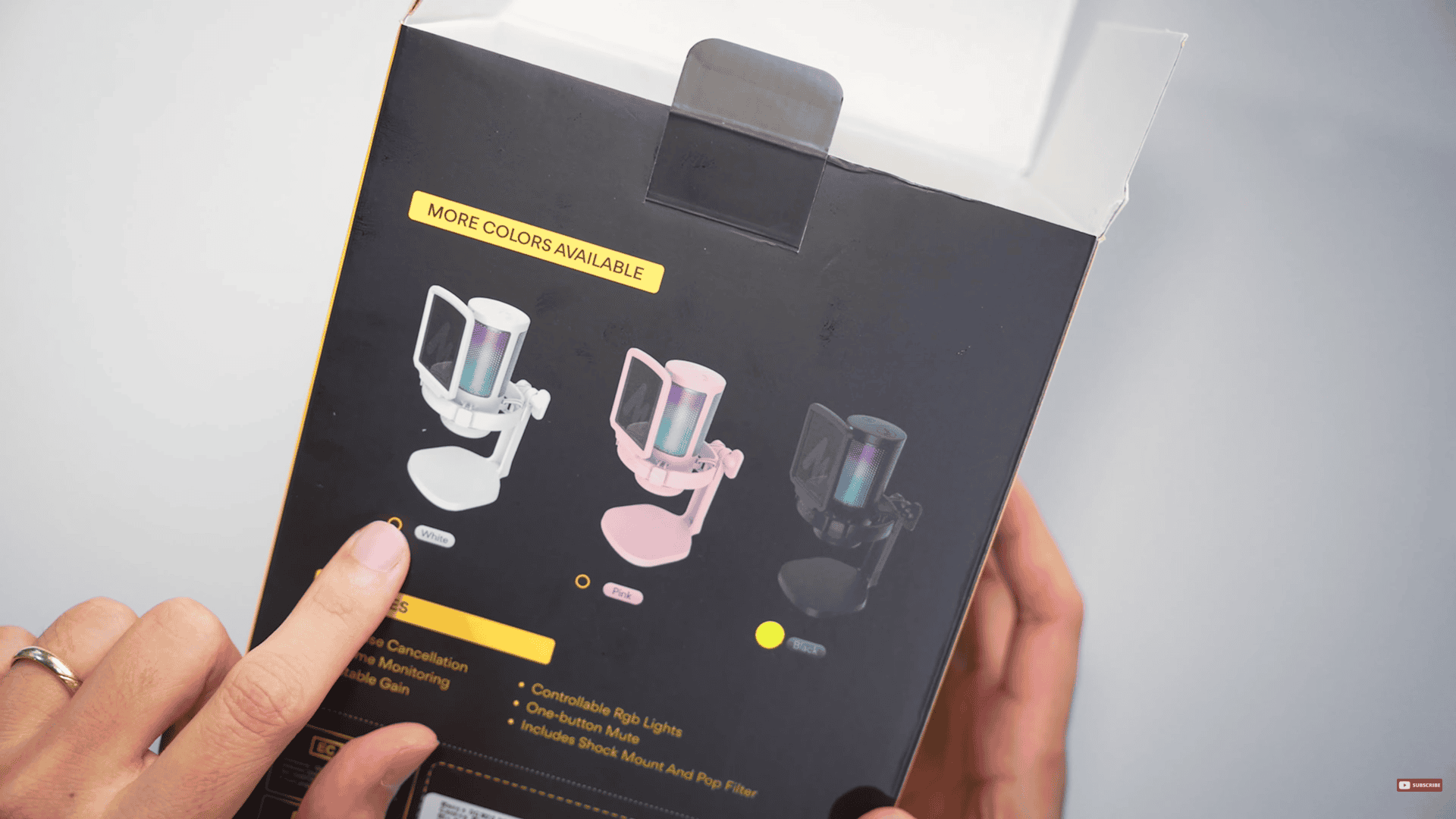 The mic comes in three colors. The one I have is black, but there are white and pink versions of the mic as well.